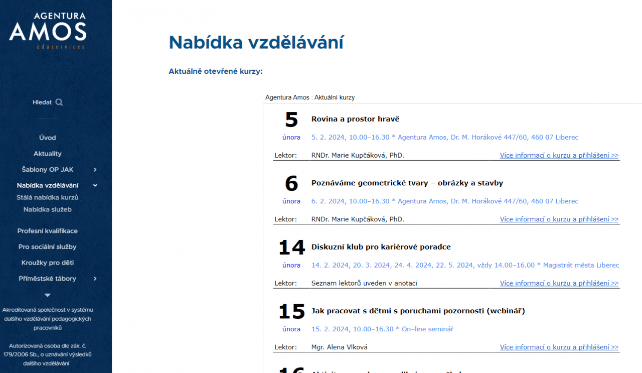 V naší nabídce vzdělávání už máme kurzy na celé další pololetí včetně možnosti přihlášení.