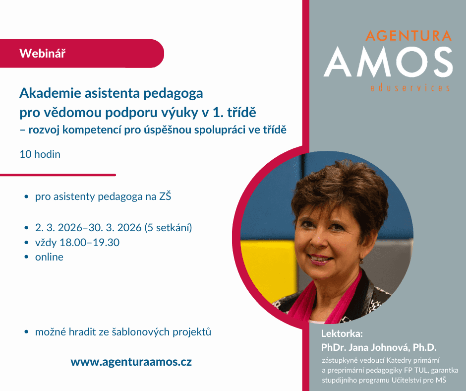 Kurz zaměřený na rozvoj praktických dovedností a metodické podpory pro asistenty pedagoga ve výuce prvního ročníku. Cílem školení je připravit asistenty učitele, kteří budou od roku 2027 systematicky zařazováni do 1. ročníků ZŠ, tak, aby byli opravdovou oporou učiteli a přínosem pro dítě.