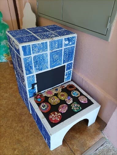 Při vstupu do školky každého přivítají kamna s napečenými koláči jako symbol – Pojďte k nám všechny děti, kteří si chtějí nejen hrát, ale také se něco naučit.