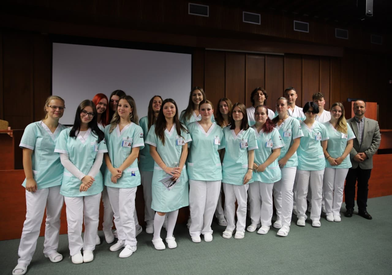 Naši žáci 2. ročníků oborů Praktická sestra a Ošetřovatel se symbolicky vydali na svou profesní cestu. Slavnostní akce „Vítání do praxe“ představuje okamžik, kdy se teorie proměňuje ve skutečnost a kdy začínají jejich první kroky v přímé péči