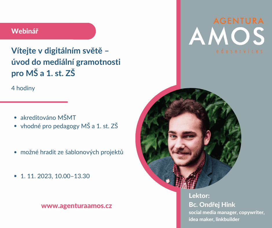 Mediální gramotnost a pregramotnost, kritické myšlení, rizika online světa... S těmito pojmy se setkáváme každý den. Jak je uchopit v praxi pedagoga se dozvíte na našem praktickém webináři pro učitele MŠ a 1. st. ZŠ. Webinář povede Bc. Ondřej Hink.