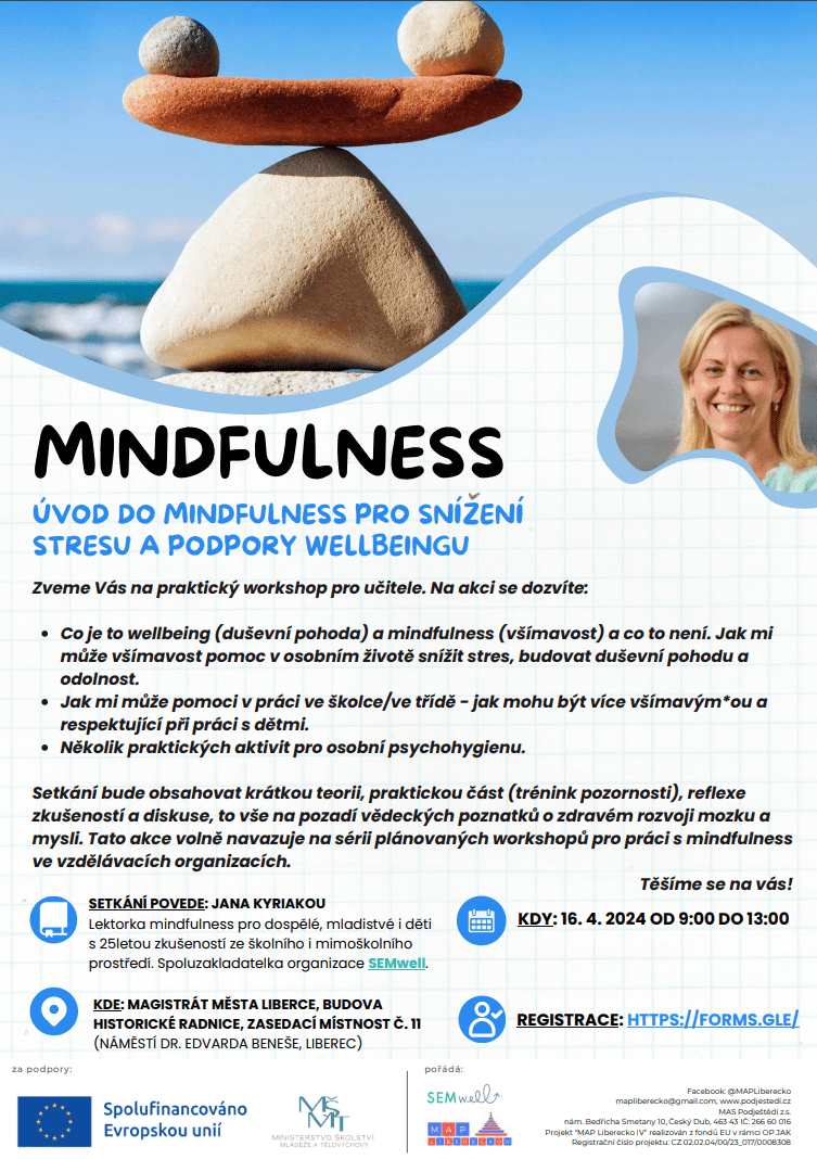 Workshop: Úvod do mindfulness pro snížení stresu a podpory wellbeingu (MAP Liberecko IV, ZDARMA)