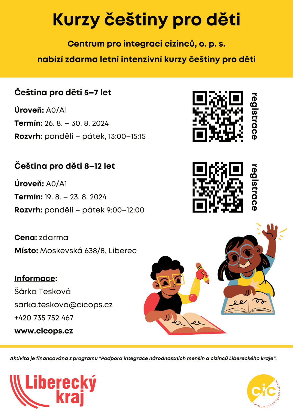 09:00 - 15:15 | Centrum pro integraci cizinců, o.p.s., e-mail: sarka.teskova@cicops.cz, tel: 735 752 467