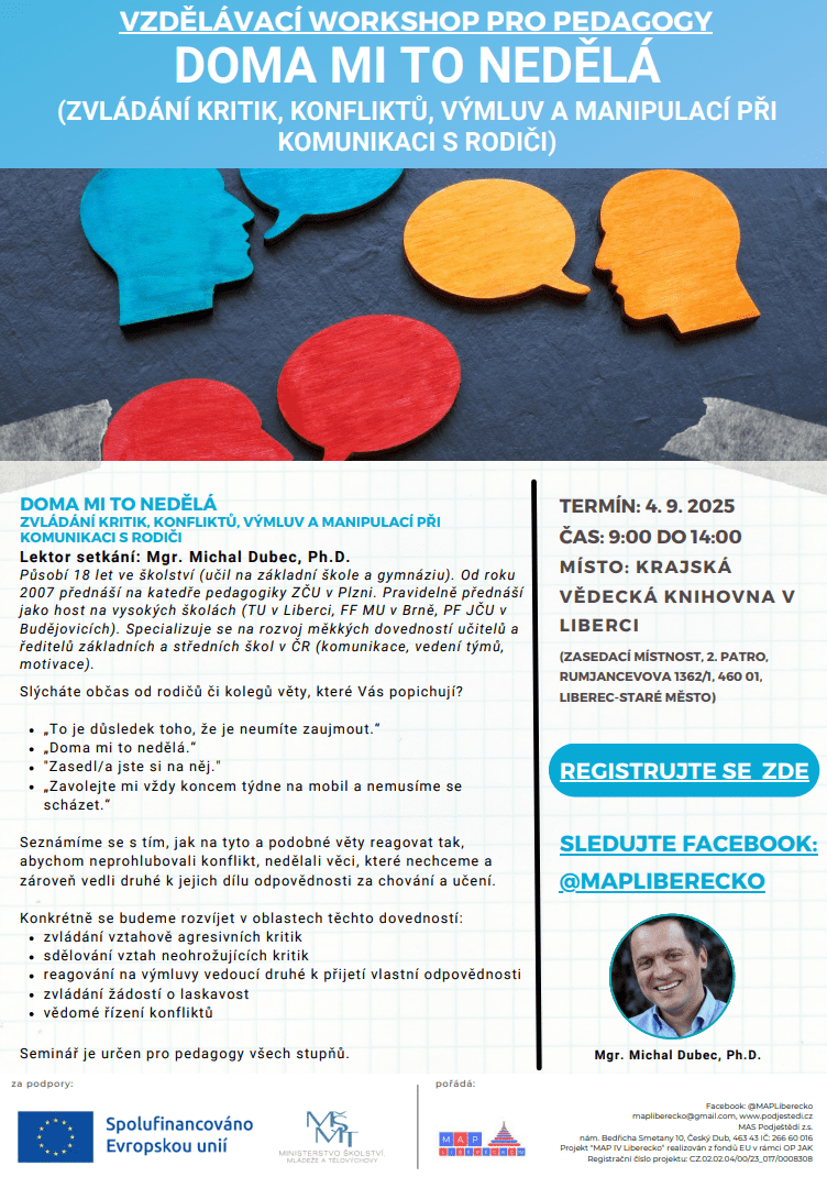 Doma mi to nedělá – Zvládání kritik, konfliktů, výmluv a manipulací při komunikaci s rodiči (Dubec, ZDARMA, MAP IV Liberecko)