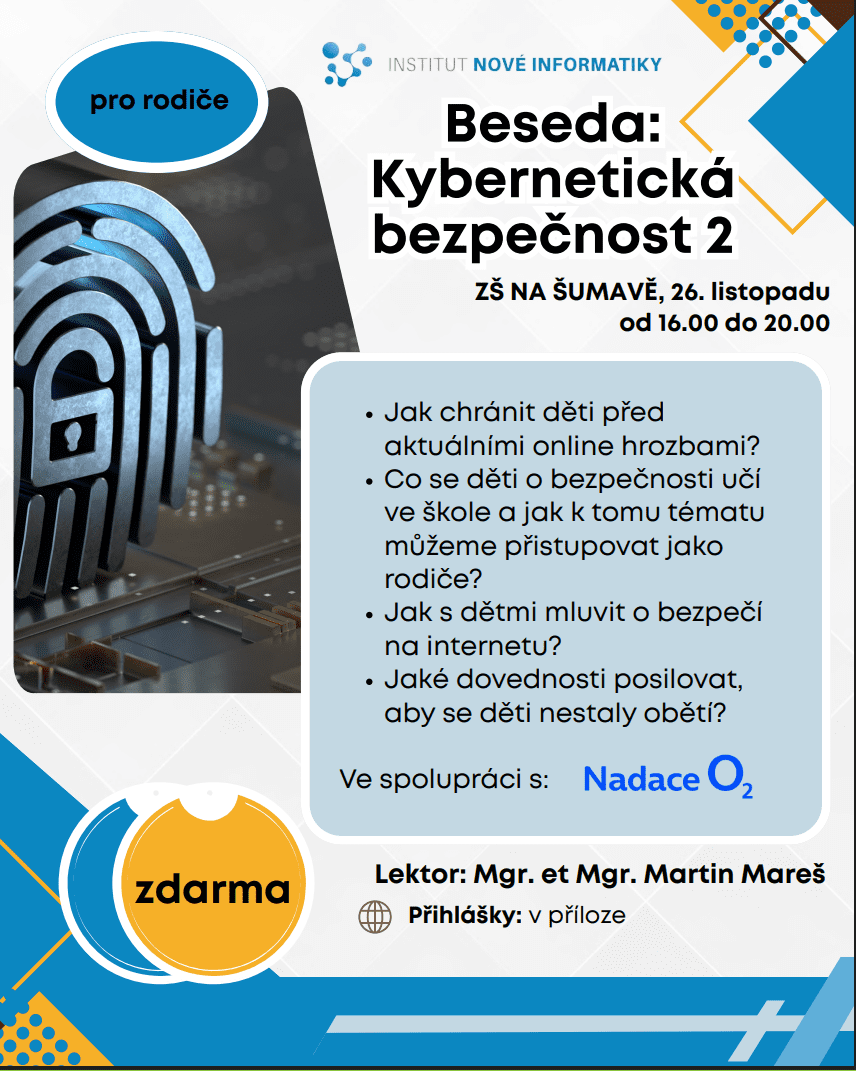 Naším hostem a přednášejícím bude Mgr. et Mgr. Martin Mareš, odborník na digitální bezpečnost a metodik Národního pedagogického institutu.