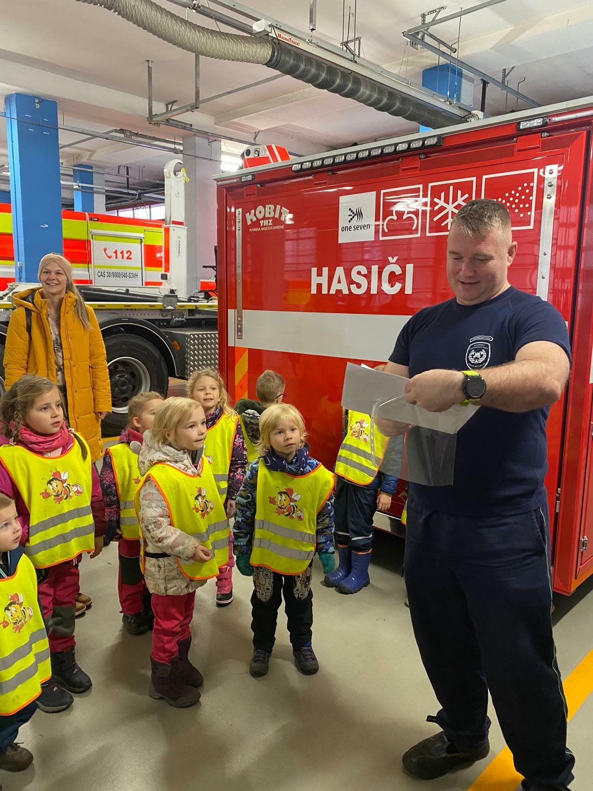 Návštěva proběhla na místní stanici Hasičského záchranného sboru v Liberci, v Šumavské ulici. Průvodcem byl úžasný a trpělivý hasič Tomáš V., který dětem připravil zajímavé dopoledne. Nejprve se malí návštěvníci dozvěděli, co vše musí hasiči zvládnout – od hašení požárů, přes zásahy při dopravních nehodách, až po pomoc při přírodních katastrofách.