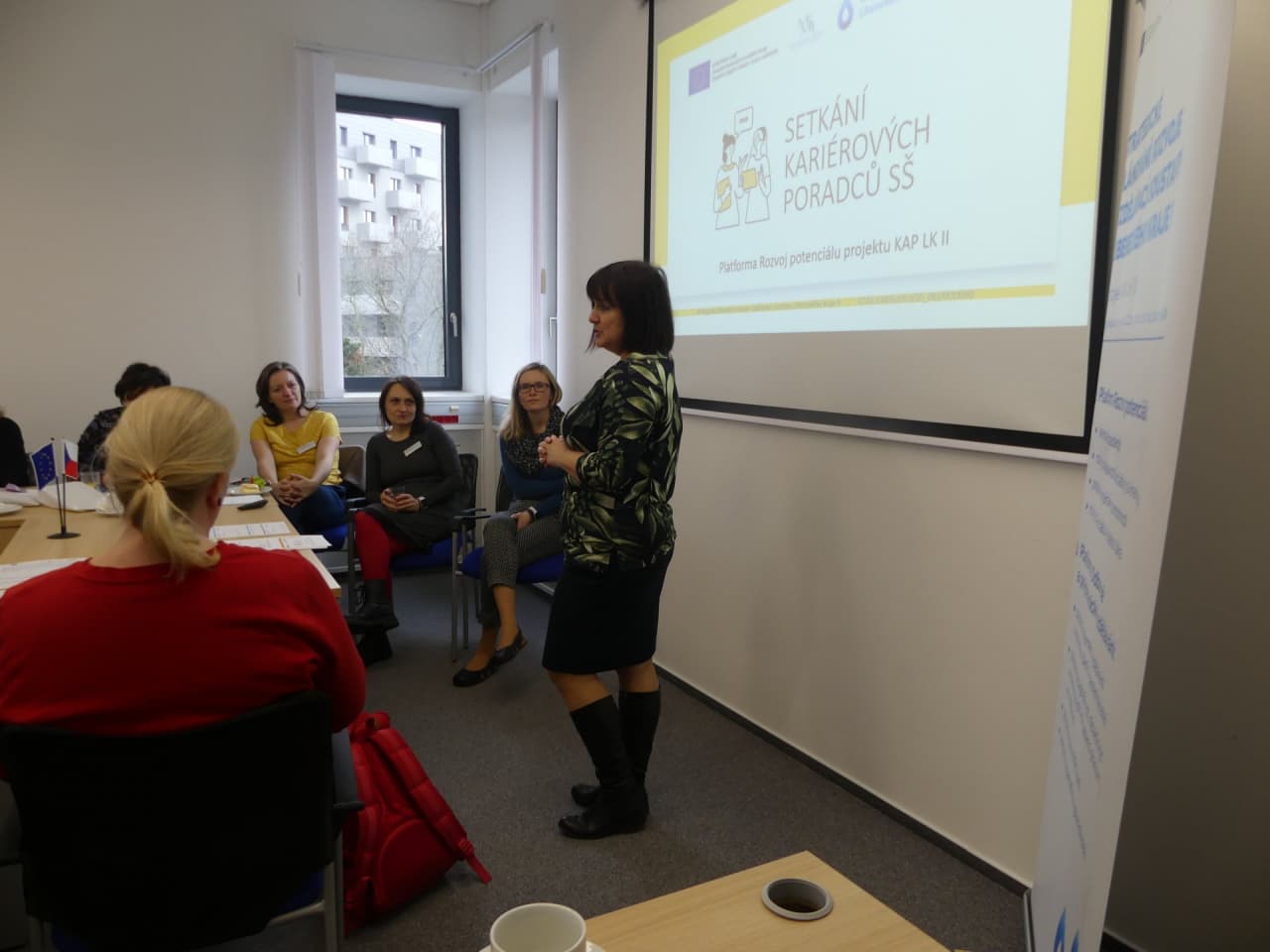 Setkání vedla metodička projektu Michaela Valentová. Po přivítání všem přítomným představila projekt KAP LK II. Následně se slova ujala Naděžda Vojtíšková ze Svazu průmyslu a dopravy. Nabídla kariérovým poradcům možnost exkurzí u zaměstnavatelů a pomoc při spolupráci s firmami. Informovala o plánovaných aktivitách Svazu průmyslu a dopravy, např. o exkurzi pro pedagogy ve Škoda Auto. Zároveň uvedla, že i budoucí aktivity Svazu je možné přizpůsobit potřebám škol. (Zájemci o užší spolupráci ji mohou kontaktovat na nvojtiskova@spcr.cz)