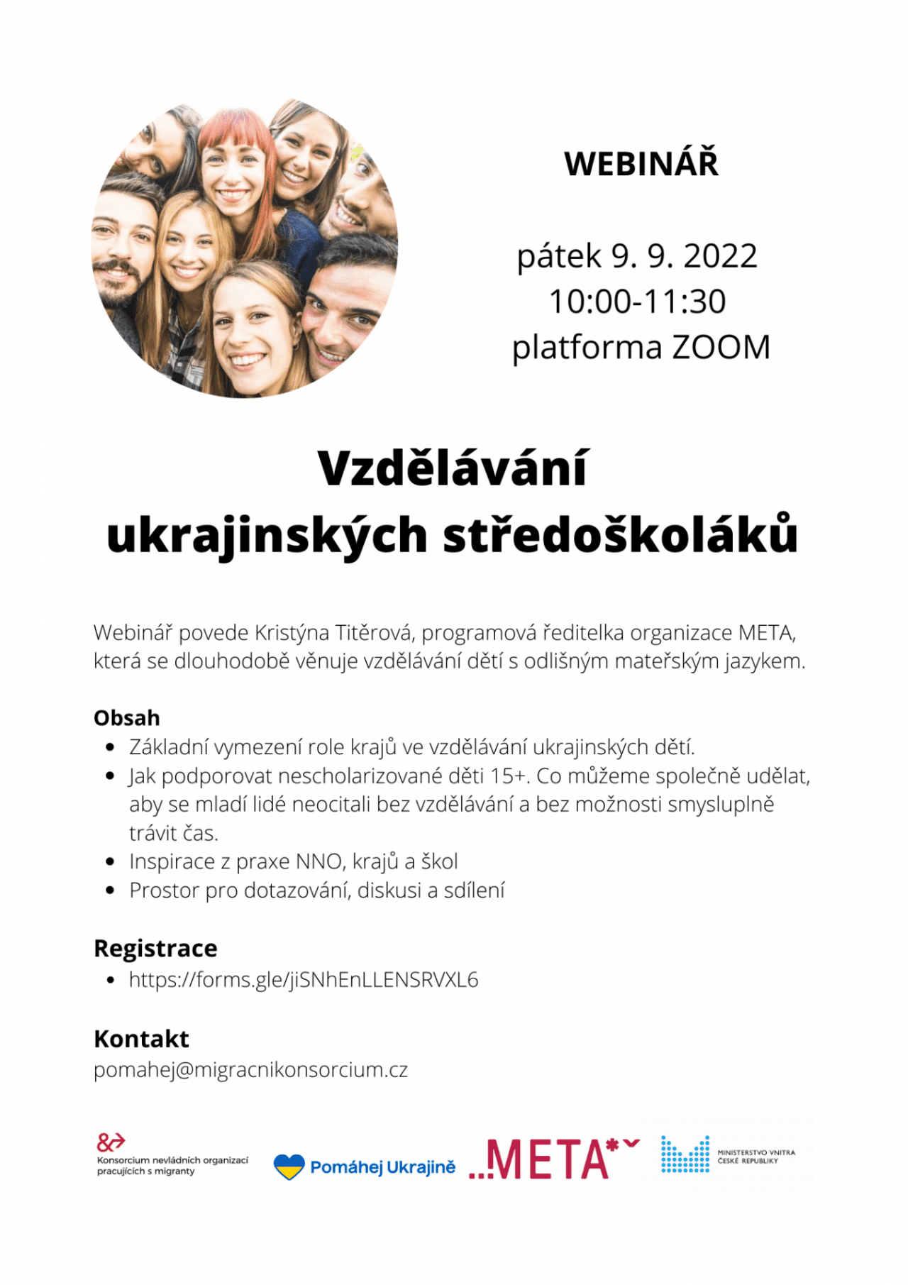 Webinář na téma vzdělávání ukrajinských středoškoláků se bude konat v pátek 9.9 v 10:00-11:30 na platformě ZOOM.