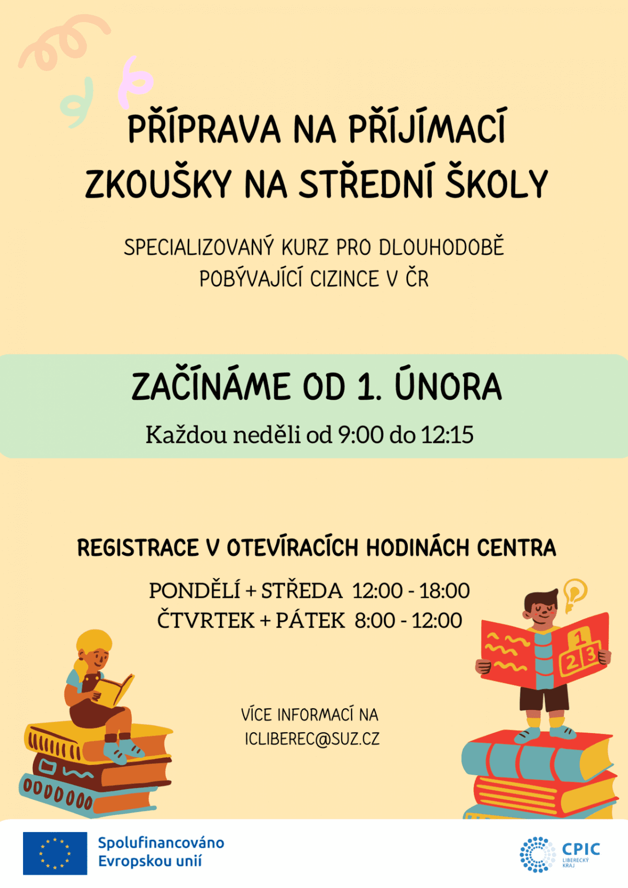 Zveme všechny zájemce, kteří chtějí své děti lépe připravit na přijímací řízení. Více informací na e-mailu icliberec@suz.cz.